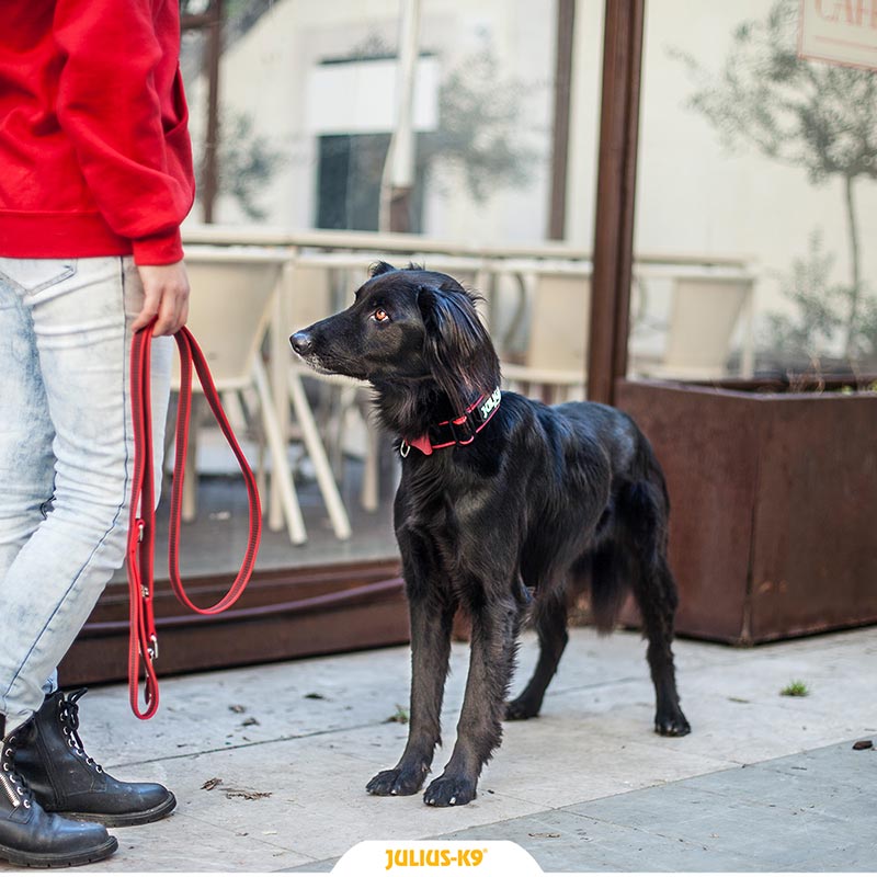 Mit der Führleine kann eine große Schlaufe gebildet werden, sodass der Hund leicht angebunden werden kann.
