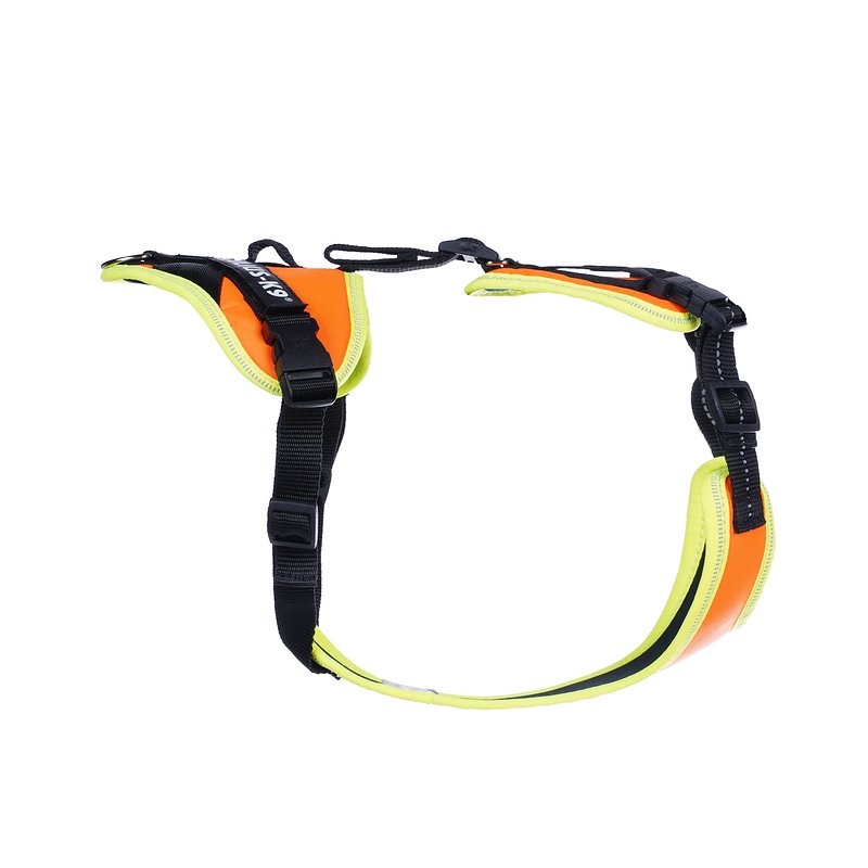 Den Schultergurten wurden lichtreflektierende Streifen hinzugefügt, um die Sichtbarkeit des orangefarbenen UV-Geschirrs zu erhöhen.