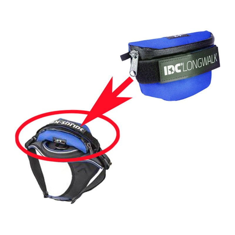 An der Oberseite des IDC®Longwalk-Y-Geschirrs kann eine IDC® Universal Tasche angebracht werden. Bis zur Größe 2XS-M empfehlen wir die kleine IDC® Universal Tasche und für die Größen L-2XL die große Tasche.