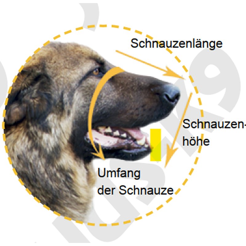 Bei der Wahl der optimalen Maulkorbgrösse sollte die Schnauze des Hundes in geöffnetem Zustand gemessen werden: