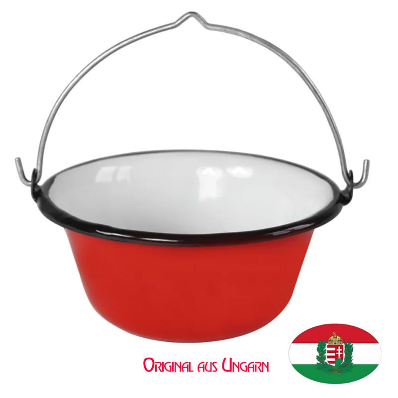 Dieser traditionelle, original ungarische Gulaschkessel ist für Gäste ein echter Hingucker wenn Sie darin Gulasch, Suppen oder Eintöpfe servieren.