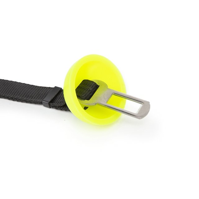 - Die Leine schränkt die Bewegungen des Hundes ein und vermeidet somit, dass dieser den Fahrer beim fahren stört oder bei offener Tür herausspringt.