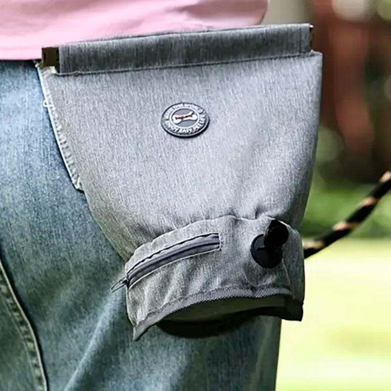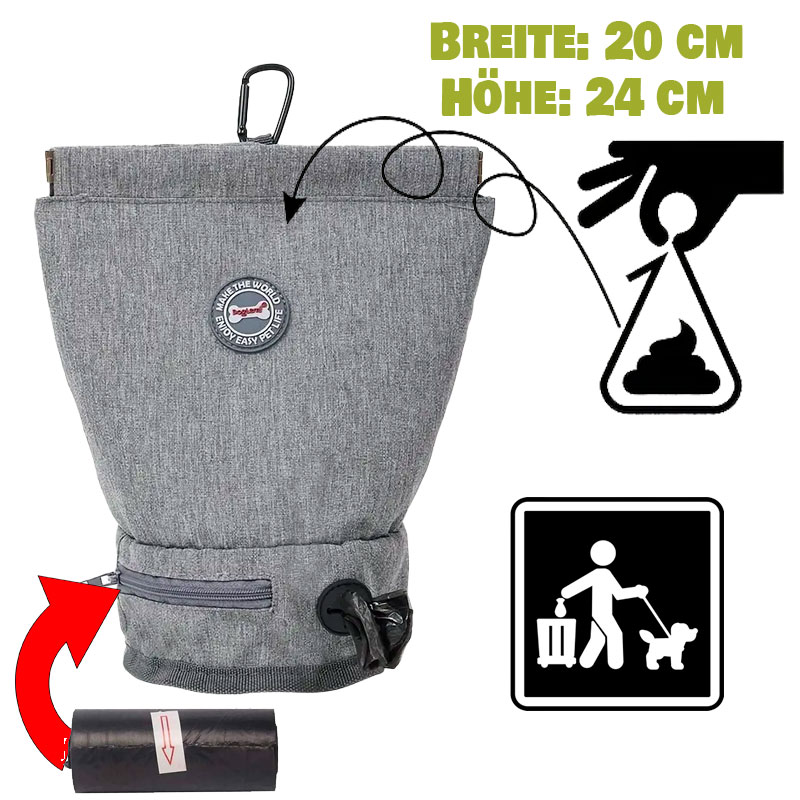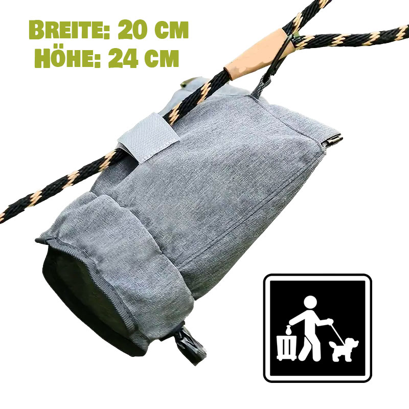 Den vollen, verschlossenen Beutel können Sie dann ganz einfach oben in die Tasche geben. Dann ist auch ein hygienischer, sicherer, geruchsfreier und diskreter Transport von den Hinterlassenschaften bis zum nächsten Müllbehälter gewährleistet.